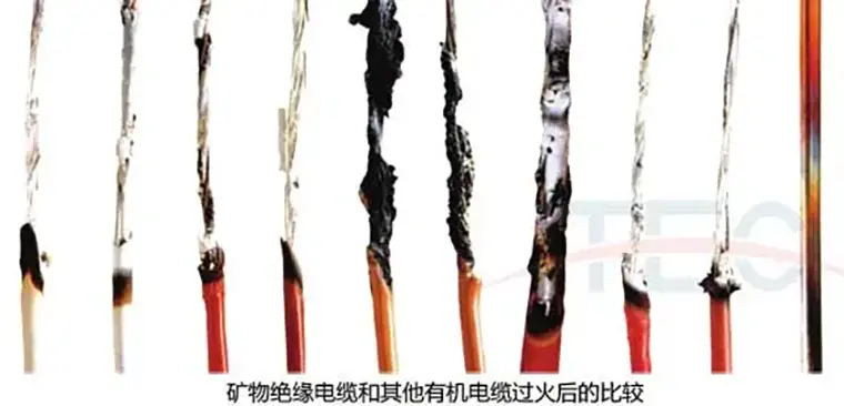 Кабели с минеральной изоляцией практически не изменились после испытания на огнестойкость. Кабели с органической изоляцией демонстрировали очевидную карбонизацию.