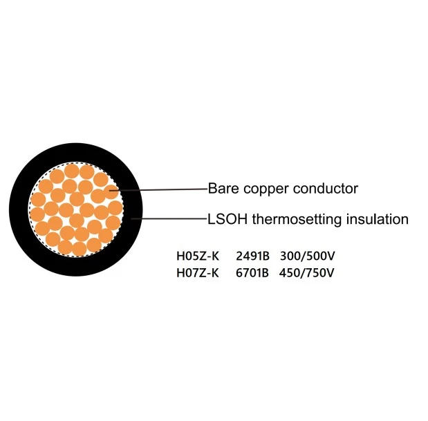 H05Z-K (2491B) H07Z-K(6701B): Тонкие неизолированные медные жилы в соответствии с EN 60228 cl-5.